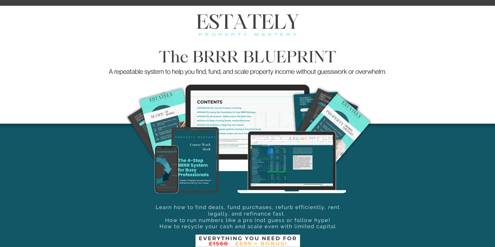 • How to source deals, fund purchases, refurb with control, let legally, and refinance fast
