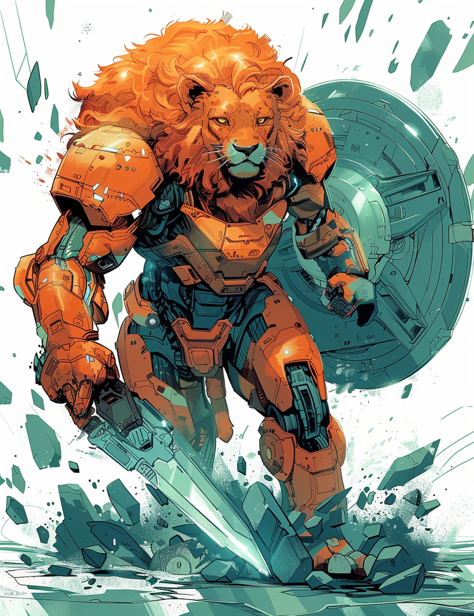 Each illustration invites the colorist into a world shaped by contrast: organic muscle paired with engineered precision, ancient instinct fused with forward-thinking design. The lion warriors stand alert and composed, sometimes fierce, sometimes contemplative, yet commanding. Their presence feels deliberate, as though each page pauses time, allowing the artist to step in and complete the scene.