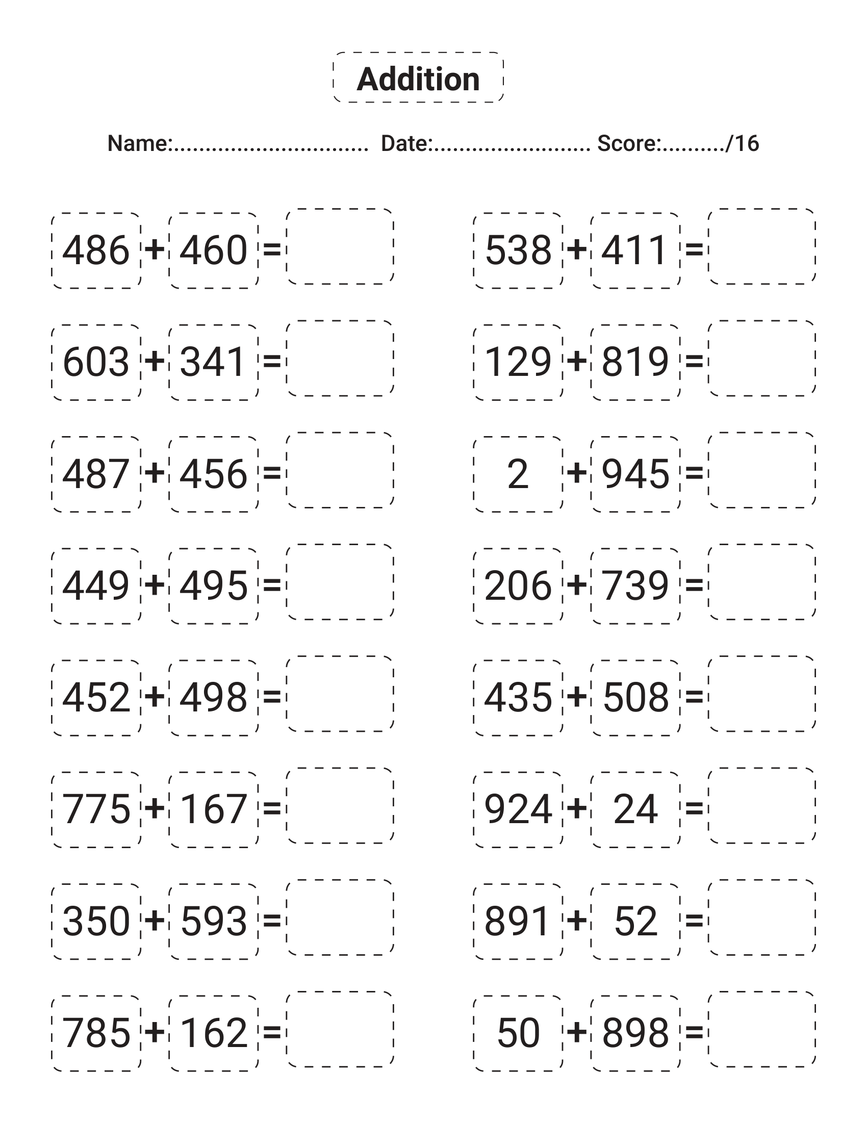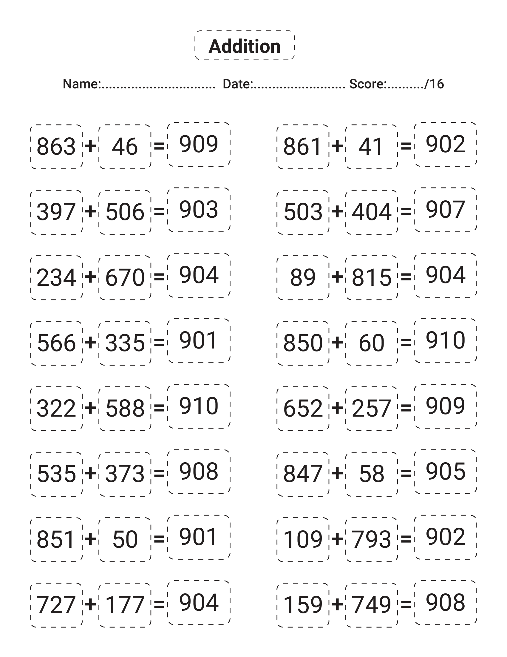 Addition answer sheets.pdf