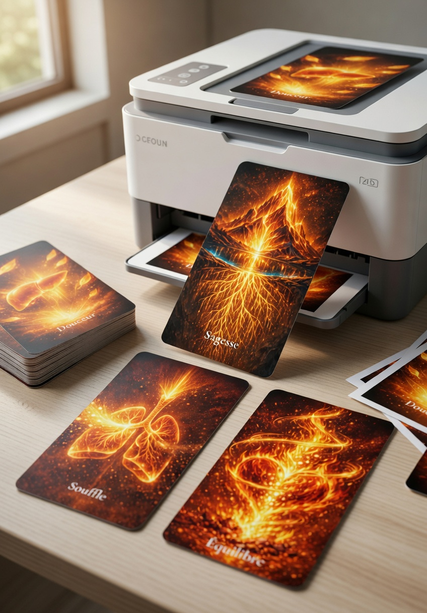 • Rituel d’ouverture court (3 respirations) : préparer l’espace, se centrer, poser une intention, mélanger les cartes (option pierre pour énergie).