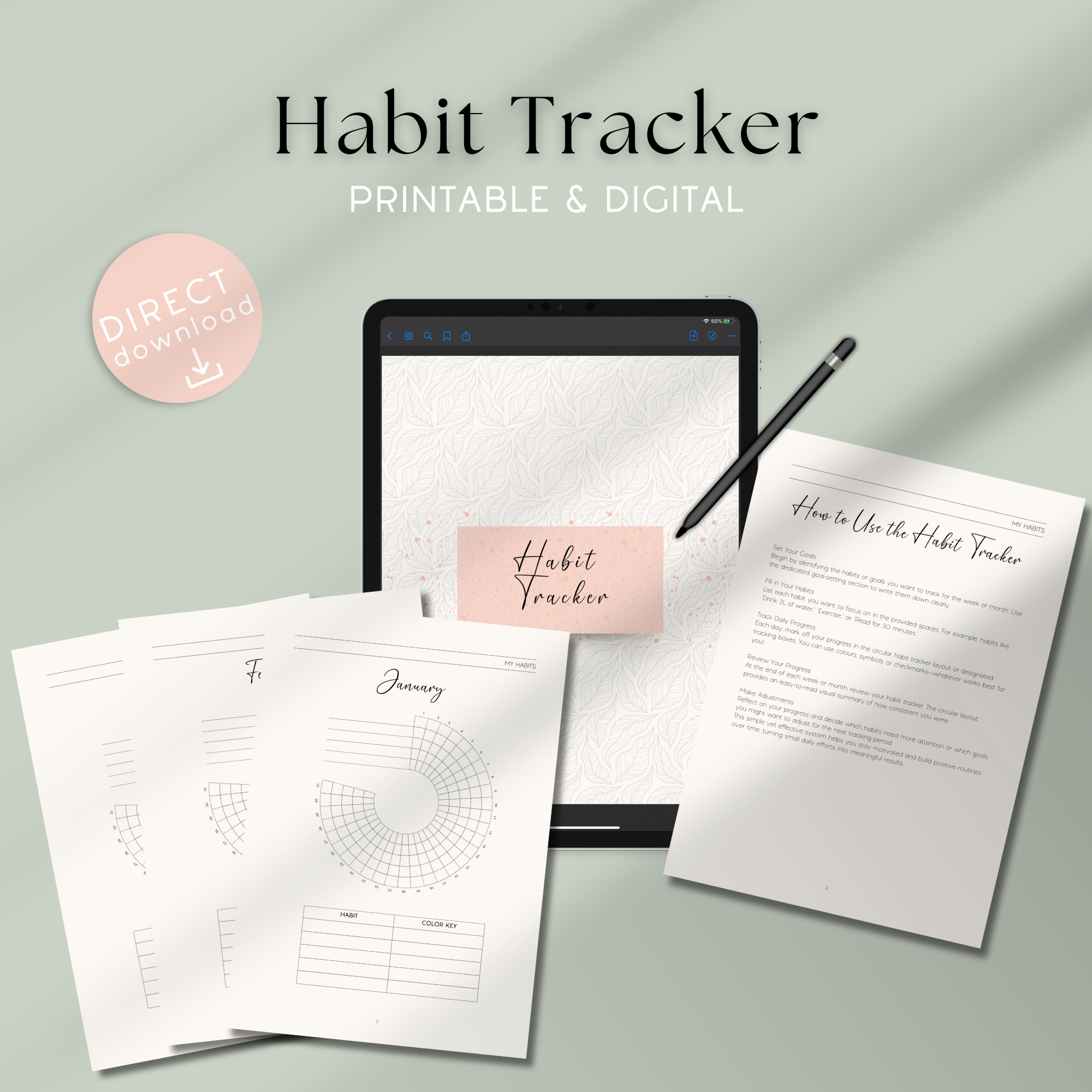 Stay on top of your goals with this beautifully designed Habit Tracker Printable PDF. Perfect for building routines and tracking daily progress, this digital planner helps you achieve your objectives with ease and clarity.