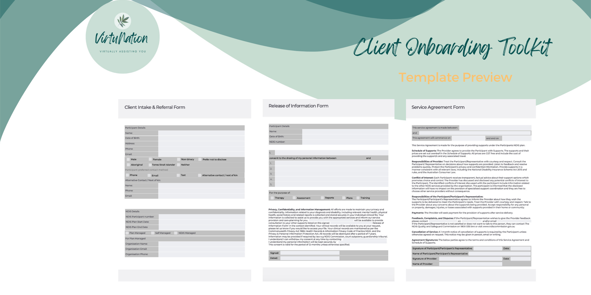 Take the stress out of onboarding new clients with this ready-to-use, professionally crafted toolkit—designed specifically for busy Allied Health and NDIS providers.